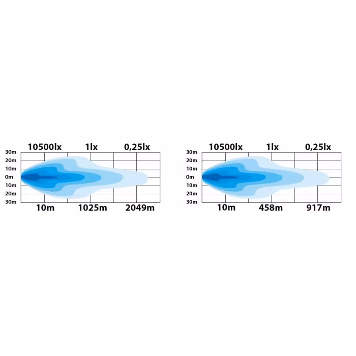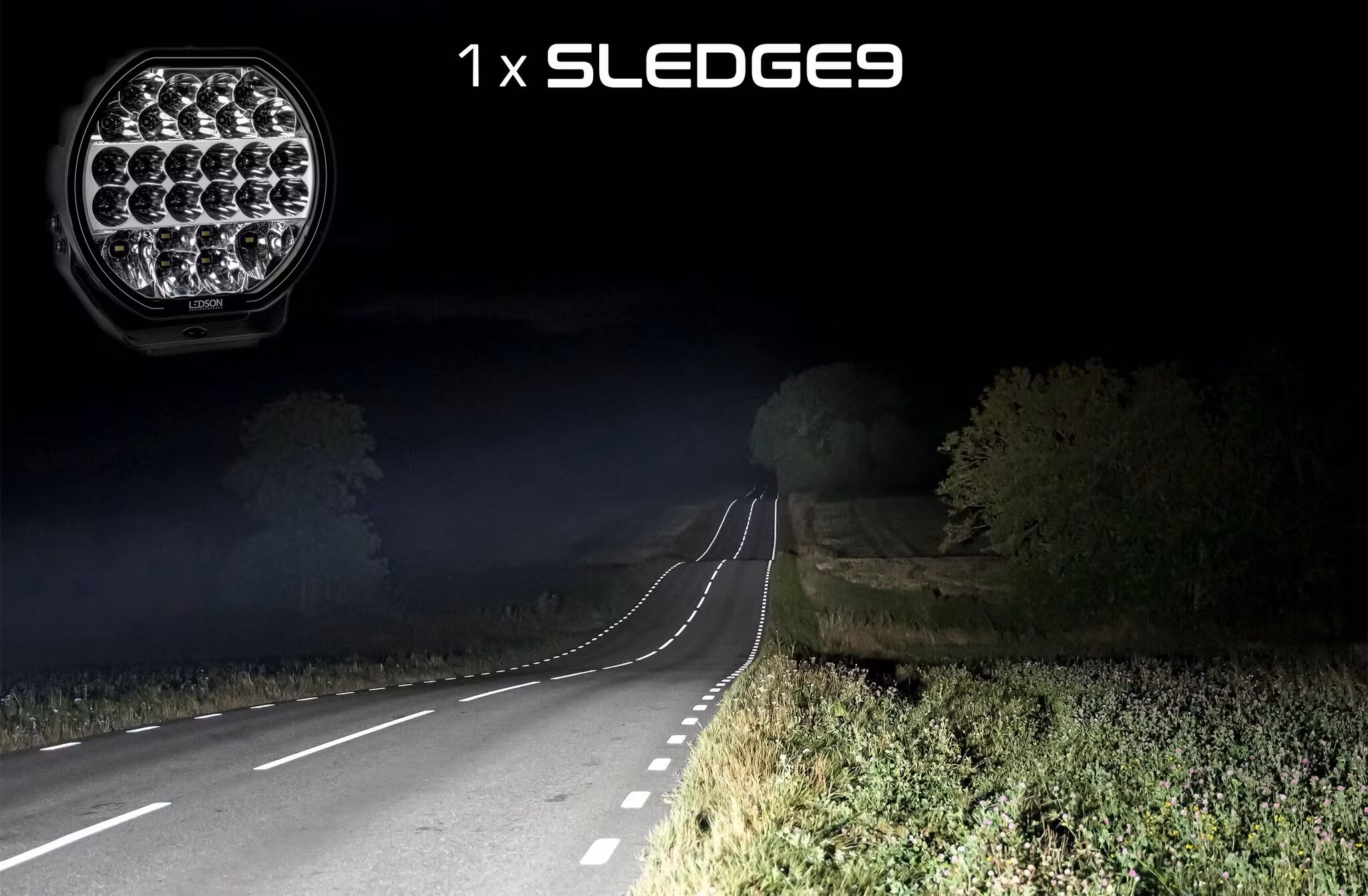 Sledge9 från Ledson är utvecklad för att leverera en högpresterande kombinerad ljusbild som ger både lång räckvidd och bred ljusspridning. I powerboostläge når ljuset hela 1025 meter vid 1 lux, vilket gör Sledge9 idealisk för mörkerkörning där god sikt långt fram är avgörande.
